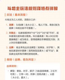2、理解叫地主流程游戏开始后,系统会发牌,每人17张,留3张底牌,接着就是,叫地主环节,这是关键,叫地主的人,能拿走底牌,然后,独自对抗,另外两个农民,叫分从1分开始,你可以选择,叫分或不叫,谁叫的分最高,谁就是地主,如果你牌很好,比如有很多2,或者有炸弹,那可以抢地主,如果牌很一般,那就当农民吧,和队友合作,一起打败地主。
