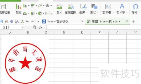 首先打开工作样表,完成所需插入表格章的表格制作。接着插入已准备好的电子图章图片。若图章原为透明背景,但在插入时Excel自动以白色填充透明区域,导致图章遮挡表格内容,影响显示效果。
