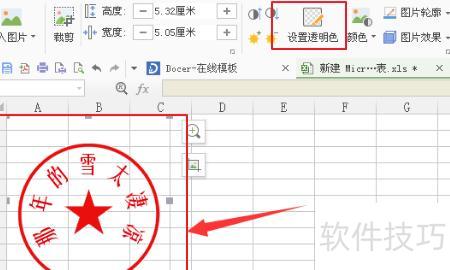 在导航栏中找到格式选项,若未显示,可左键点击图章图片进行查找。点击颜色快捷方式并选择设为透明色,此时鼠标变为笔形,点击图片的白色背景区域,即可将其变为透明。最后将图章调整至合适位置完成操作。