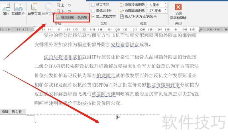 若无需前一页页码,可将光标移至目标页面前一页的页脚位置进行设置。