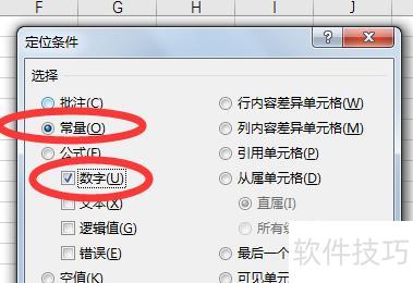 可快速定位所选区域内所有包含数字的单元格。
