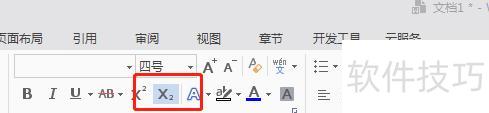 选中数字,点击工具栏中的下标按钮,操作所示。