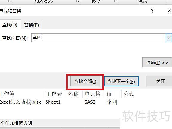 Excel快速查找操作步骤如下所示