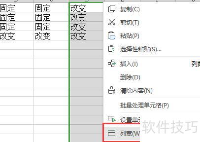 设置列宽时,选中表格后,在表头字母行右键点击,选择列宽选项,输入数值后点击确定即可完成。也可单独调整某行高度或某列宽度,操作方法相同,只需先选中目标区域,再进行高度或宽度的设置。