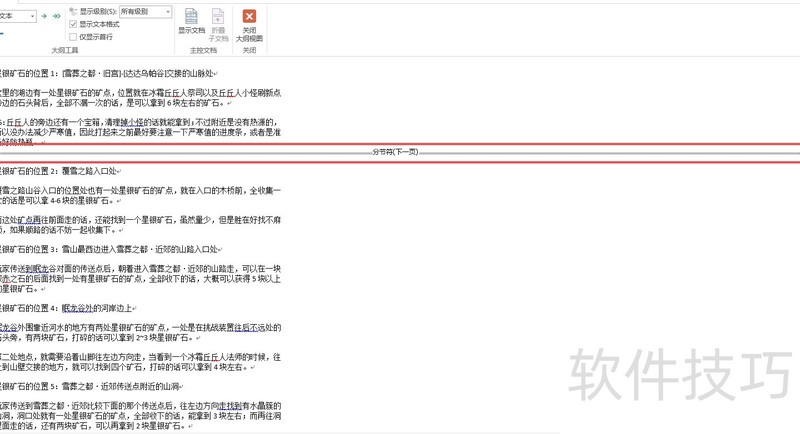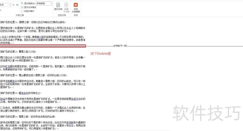 第十步,文档中的分节符已成功删除。关闭大纲视图并返回普通阅读模式后,可确认分节符确实已被清除,文档结构恢复连贯,整体排版更加整洁清晰。