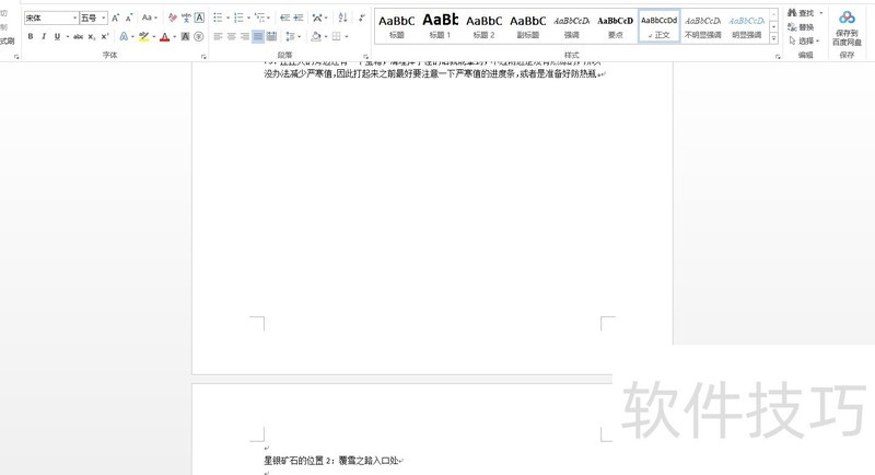 第二步,文档打开后可见分页,但无论怎样删除,都无法清除之前插入分节符的位置。