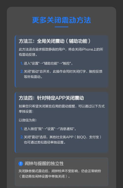 关闭震动不难。根据需求,选择方法。想要全关,就去设置。只想部分,就单独调。图省事,就用静音键。现在,试试看吧。让你的手机,安静下来。