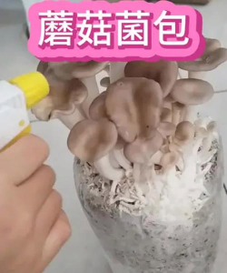 3、耐心等待与细心养护,静待破土而出菌包放好后,就别老去动它,每天喷水两三次,保持湿润,大约一周左右,你会看到小白点,那就是原基,蘑菇的雏形,这时更要注意保湿,但水别直接喷在小菇蕾上,再过几天,小蘑菇就会噌噌往上长,非常有趣。