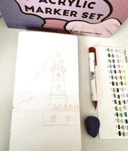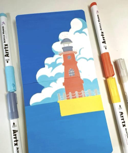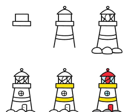 看,灯塔画好了,其实很简单,关键多练习,大胆去画吧,享受绘画乐趣。