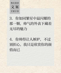 将外表与内在结合,提升层次,例如,说我长得端正,做事也靠谱,或者,颜值在线,能力也不掉线,这样,夸帅的同时,也展现了你的内涵,让人觉得你内外兼修,魅力更持久。