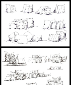 3、刻画质感,表现柔软特性枕头的质感,是绘画的灵魂,表面有布纹褶皱,这些线条要柔和,不能太生硬,顺着结构画,表现布料的松弛感,可以加些针脚细节,或者图案花纹,让画面更丰富,注意褶皱的疏密,有聚有散才自然。