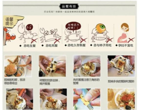 4、烹饪方式随你选,保留鲜味是王道处理干净的螃蟹,就可以下锅烹饪了,烹饪方式很多,清蒸是最能,保留原汁原味的,锅中水烧开,将螃蟹肚皮朝上,放入蒸屉,这样蟹黄不易流出,大火蒸十到十五分钟,具体时间,看螃蟹大小,看到蟹壳变红,就是熟了,除了清蒸,香辣炒蟹,也特别受欢迎,将螃蟹切块,沾上淀粉,下油锅炸至金黄,再和葱姜辣椒,一起爆炒,香味扑鼻,当然,煮粥、做面拖蟹,也都是不错的选择,无论哪种做法,都要确保,螃蟹完全熟透,因为生的螃蟹,体内可能有寄生虫,吃了不健康,烹饪时加点姜和醋,既能去腥,又能中和寒性。