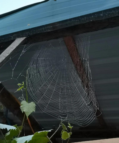 2、搭建框架,从中心向外辐射选好地方后,蜘蛛开始吐丝,它先拉出几根主丝,这些丝很结实,用来固定整个网,然后,它会从中心点出发,向外拉出辐射线,就像车轮的辐条一样,这些线是网的骨架,必须拉得均匀,而且绷得紧,这样网才牢固,不会轻易被风吹破。