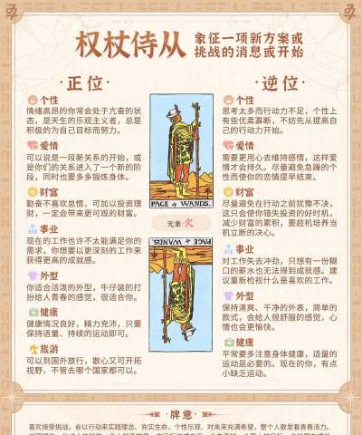 3、解读牌面符号与含义翻开牌后,别被画面吓到,每张牌,都有丰富象征,例如,权杖代表行动与创造,圣杯关乎情感与直觉,宝剑象征思想与挑战,星币则指物质与现实。