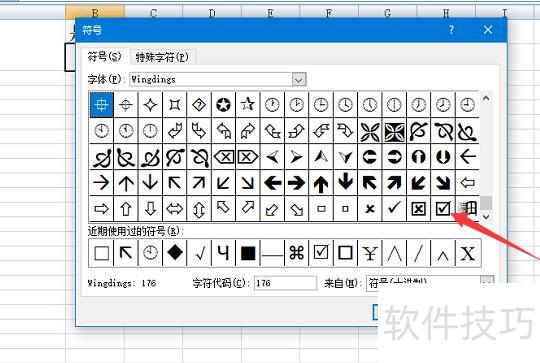在弹出窗口中选择Wingding2字体,定位到带勾的方框符号,点击插入即可。