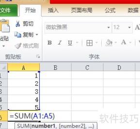 第三种方法:在下一栏输入公式=sum(A1:A5),按回车键即可完成求和操作。