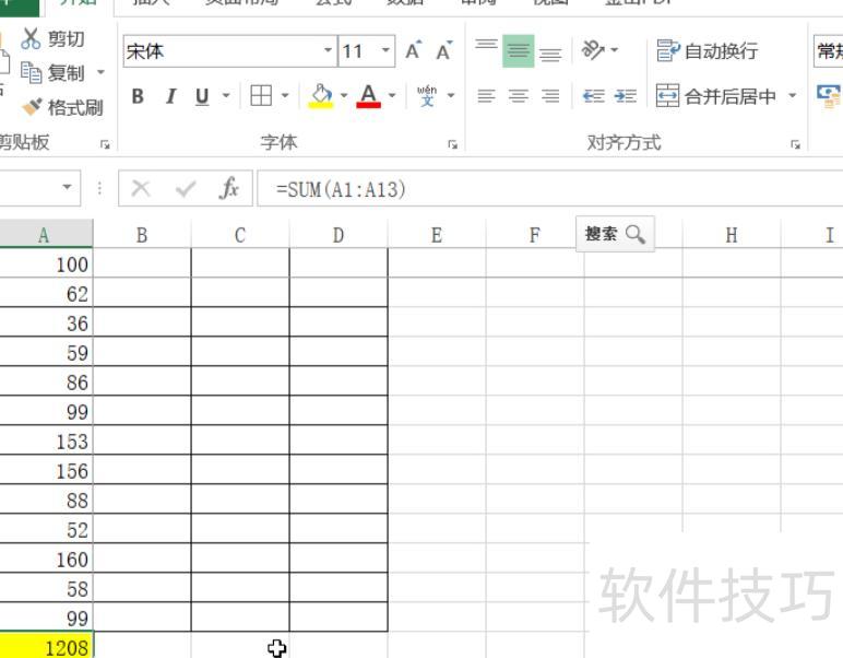 最后按下回车键,即可得到总和,完成Excel中一列数据的求和操作。