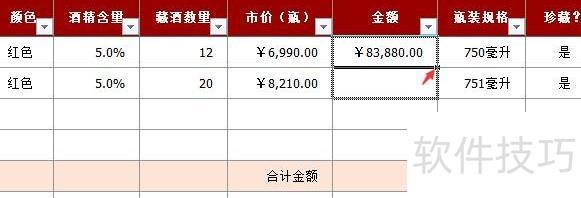 将鼠标移至计算结果单元格下方,出现十字图标后按住向下拖动,即可自动填充并计算其他单元格金额,所示。