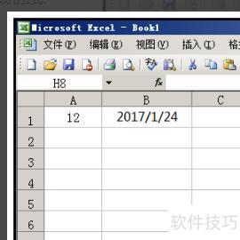 按下回车键后,在A1单元格输入任意数据,如12;若B1单元格为日期格式,则自动显示当前日期。