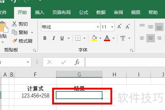 用鼠标左键单击欲输出结果的单元格(如G3),位置见图中红框标注。