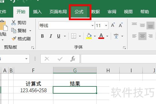 点击顶部菜单栏中的公式选项,如红框标注所示。