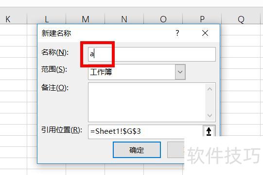 在新建名称处输入任意名称,确保不与现有单元格名称重复,中红框所示。