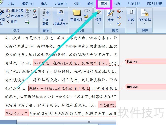 首先打开含有批注的Word文档,所示,文档中存在多处批注,接下来需将这些批注内容全部清除。