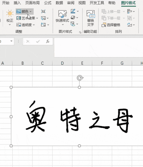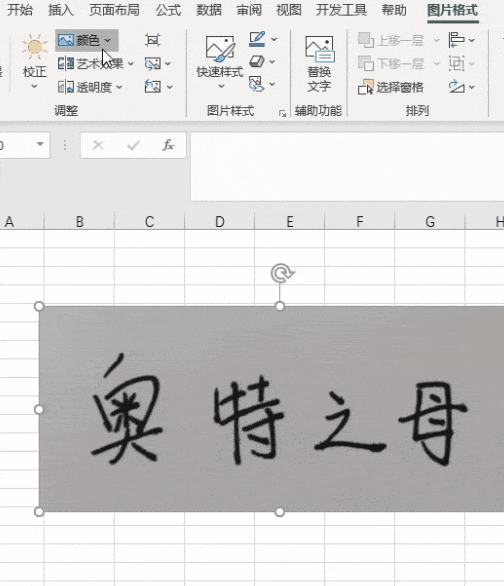3. 拯救小美行动开始!插入手写签名?,进入选项卡,点击,选择「重新着色」中的「黑白 50%」。