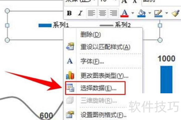 选中图例后单击右键,从菜单中选择选择数据选项。