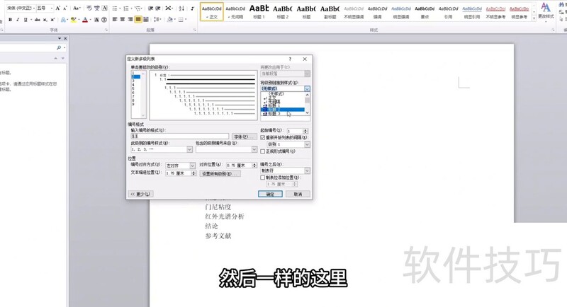 先点击段落中的多级列表,再选择定义新的多级列表,最后展开更多选项。