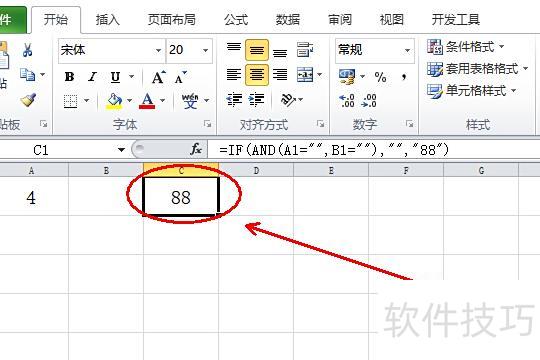 在目标单元格输入公式=IF(AND(A1=,B1=),,88),按回车键确认,即可完成操作。
