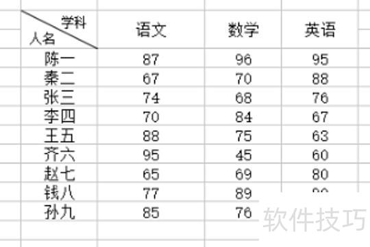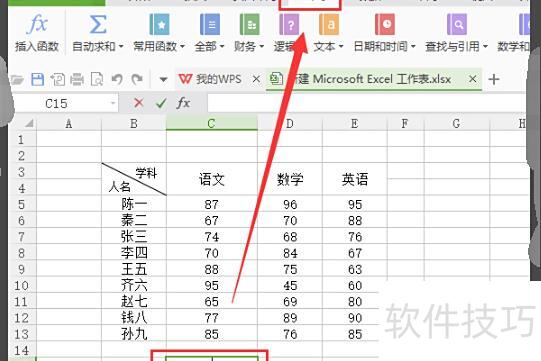 打开一个包含学生成绩数据的Excel表格,对语文成绩高于85分的数值进行求和操作。