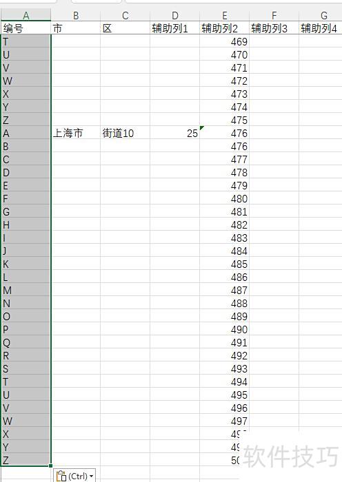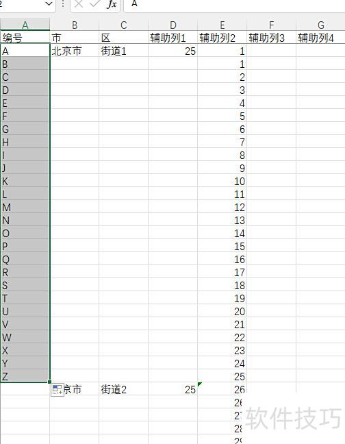 前面按街道插入26行,接下来按A至Z每个字母插入100行,方法同前。