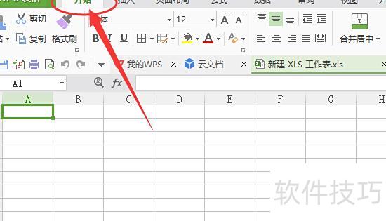 打开Excel,点击工具栏中的开始选项,操作所示。