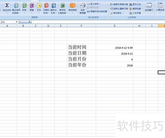 在日期和时间函数中,只需基础英文即可理解。若要显示当前时间,可选择NOW函数。
