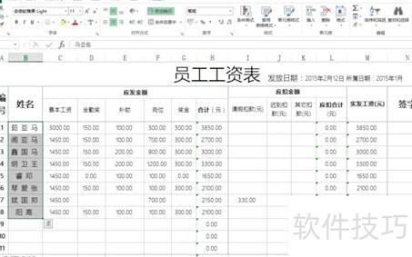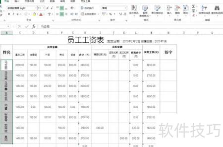 以姓名列为示例,输入@符号再设置字体格式,可将文字调整为横向排列。
