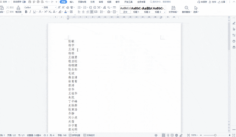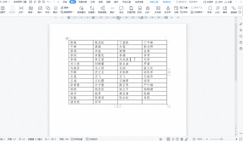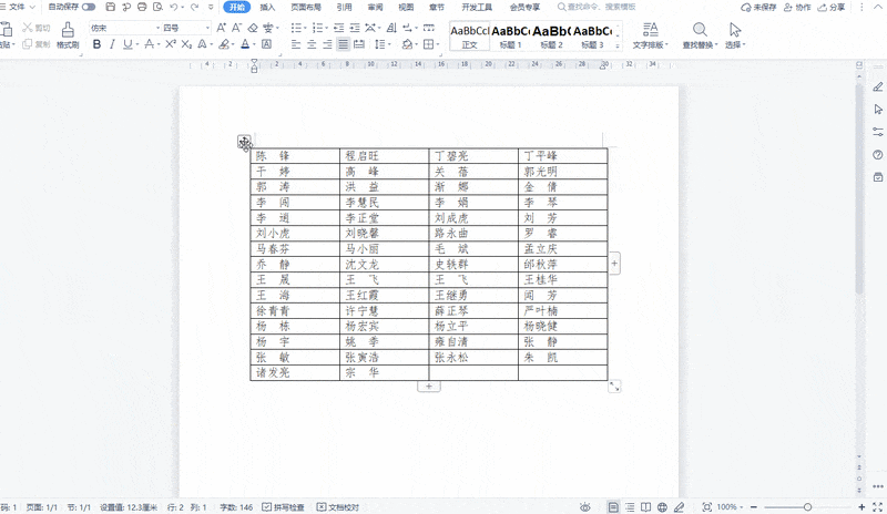 按Ctrl+A全选所有姓名,点击→→,列数设为4(可自定义),文字分隔位置选择段落标记。