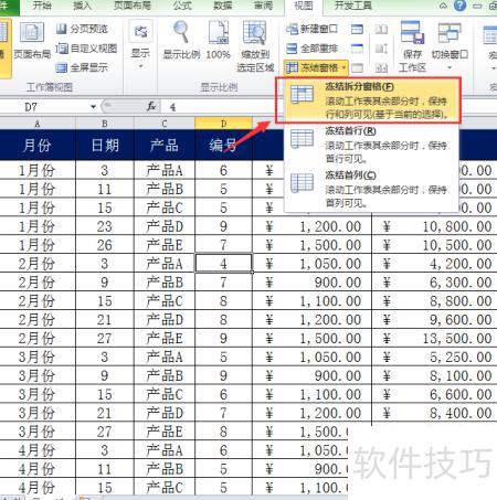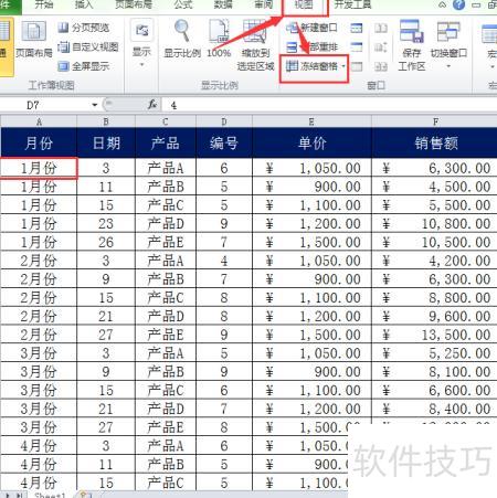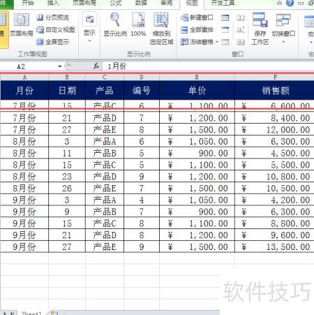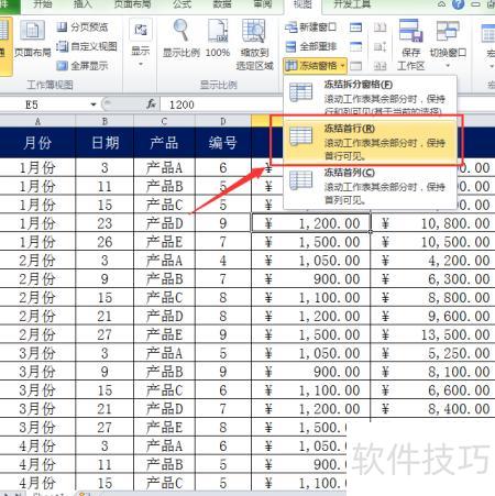 方法二:利用冻结拆分窗格功能,可冻结首行或任意多行多列。将光标置于A2单元格,若需始终显示第一行,应将光标定位在目标行下一行的首个单元格,再执行冻结操作,实现灵活固定窗口区域。