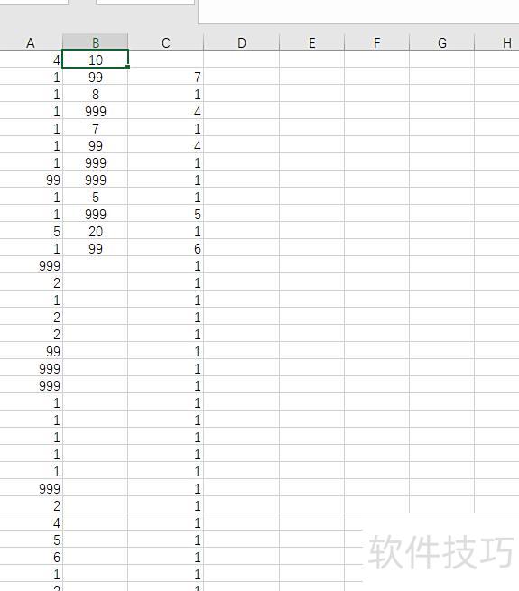 若为字母A,则B列公式应相应调整。