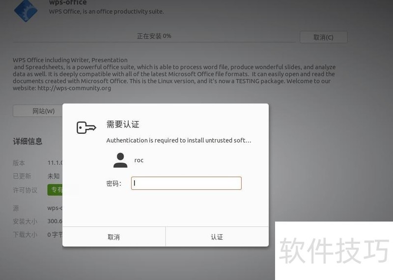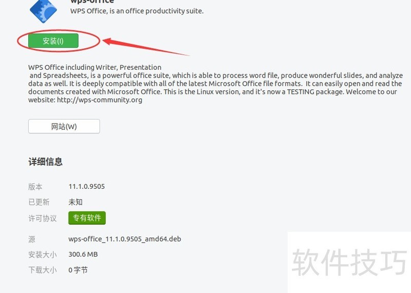 进入下载目录,双击WPS的DEB安装包,即可启动并安装WPS办公软件。