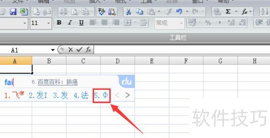 选中单元格,使用网络或搜狗输入法输入fai,以网络输入法为例,即可出现手写体φ符号,所示。