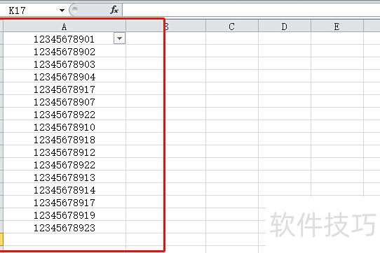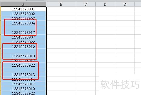 以Excel 2010为例,若A列存在不连续的空单元格需删除,可先选中整列数据区域,所示。