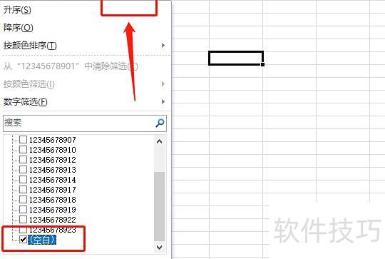 首行单元格右侧会出现倒三角,点击后在筛选框中仅勾选空白,最后点击确定即可。