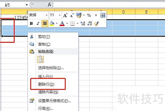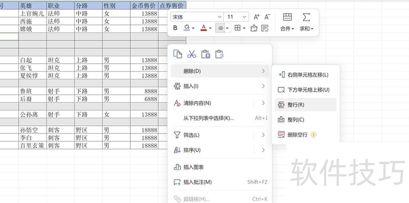 此时会筛选出该列所有空白单元格,全选这些单元格所在行,右键点击,从弹出菜单中选择删除行即可。