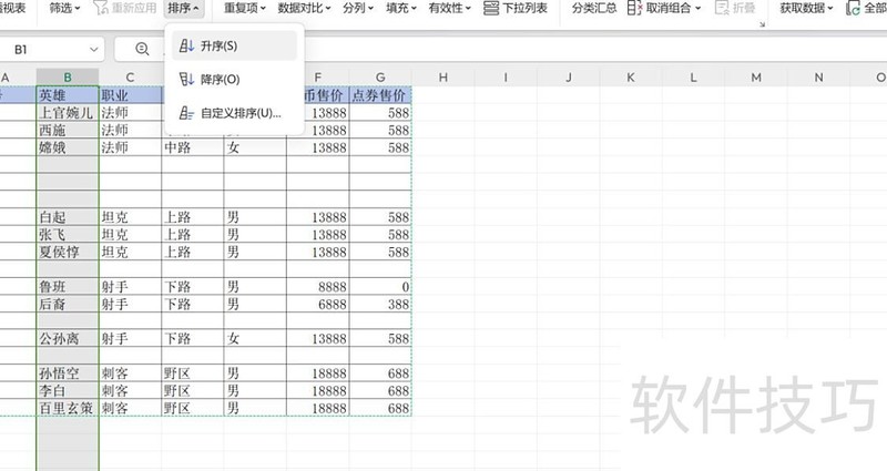该列数据中的空白单元格将全部被删除。