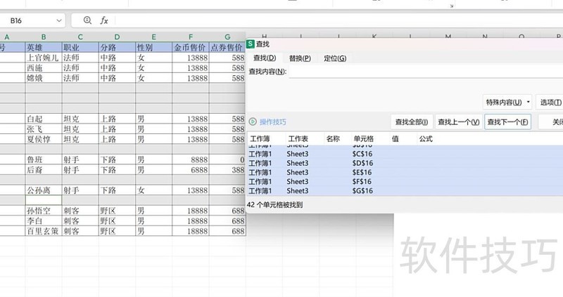 按下打开查找替换窗口,点击后按全选,即可将所有空白单元格全部选中并标记出来。