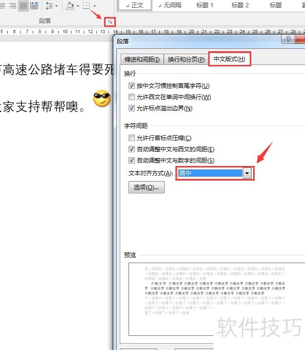 点击段落设置,在中文版式中将对齐方式设为居中。虽可将图片设为环绕以便拖动对齐,但操作繁琐、耗时,不建议使用。