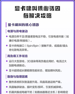 我们要明白,显卡为什么会叫,简单来说,是电流声,当显卡高负载运行时,电感线圈会振动,从而产生噪音,这声音像电流声,也像蜂鸣声,特别是在玩大型游戏时,声音会更明显,不过,这通常不影响性能,只是听着不舒服。
