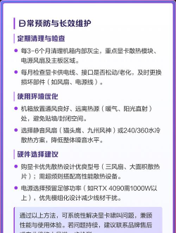 显卡啸叫很常见,但解决起来也不难,先从软件调整开始,然后改善机箱环境,再试试物理方法,最后考虑售后,一步步来,总能找到适合自己的方案,希望这些方法能帮到你,让你安静地享受游戏。