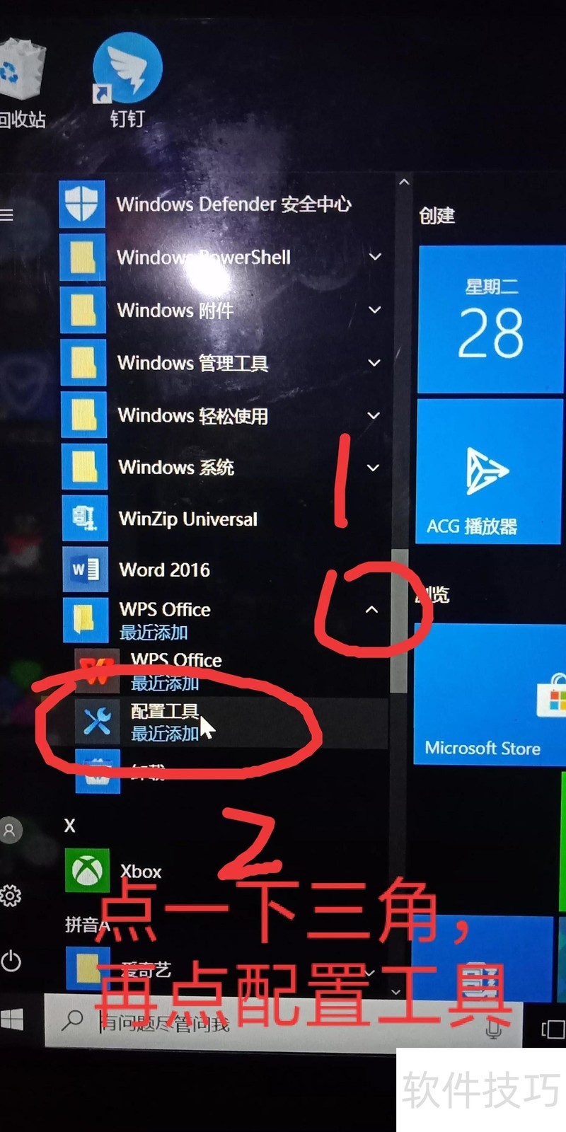 点击WPS Office文件夹右侧的小三角,左键单击即可显示配置工具。